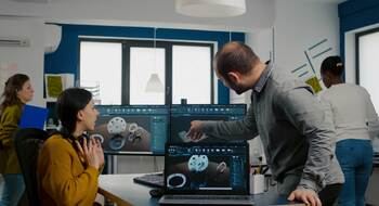 Dans un bureau d'études ou en usine, l'ingénieur aéronautique évolue au sein d'équipes pluridisciplinaires.
